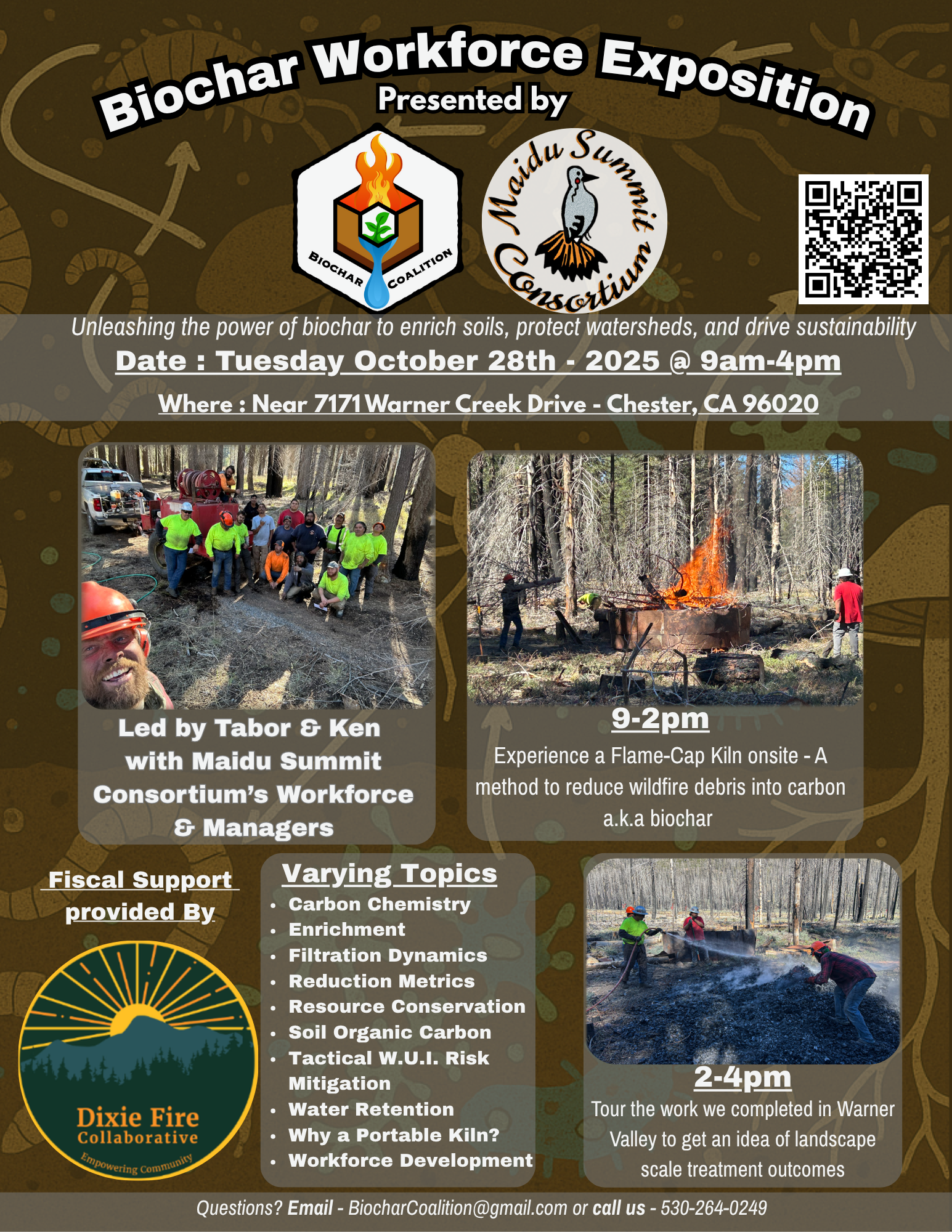 Biochar Workforce Exposition, October 28, 2025. 9am - 4pm Near 7171 Warner Creek Drive - Chester, Ca. 96020